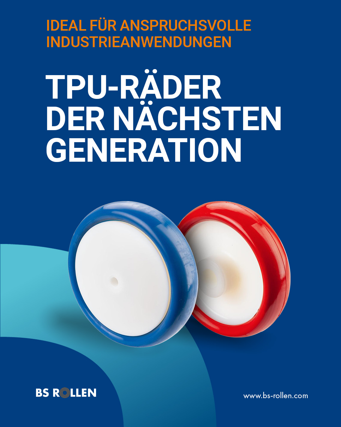 Hervorragende Materialbeschaffenheit, unterschiedliche Härtegrade und Tragkräfte bis 750 kg – die neuen TPU-Räder decken vielfältige Einsatzzwecke bis in den Schwerlastbereich ab und sind auch als komplette Rollen verfügbar.