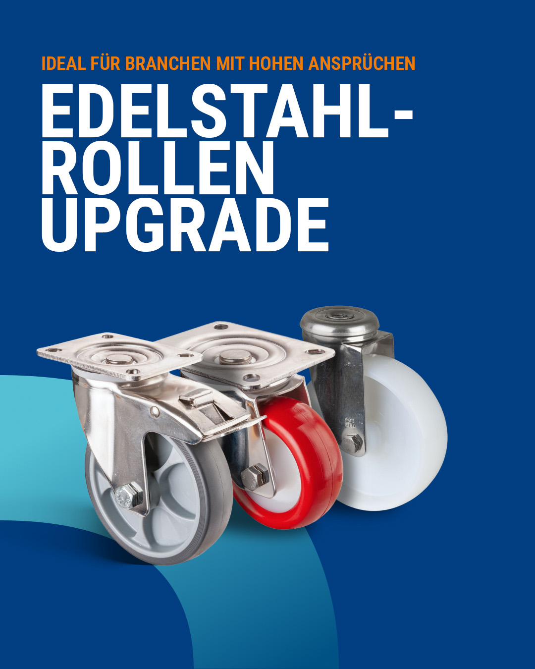 Ganz gleich ob in Großküchen, Großbäckereien, in der Medizin-, Chemie- oder Hygienetechnik; die neuen Edelstahl- Apparate-, -Transport- und -Schwerlastrollen überzeugen mit Laufflächen aus PA, TPU und PU und Tragkräften bis 700 kg in jedem Einsatzzweck.