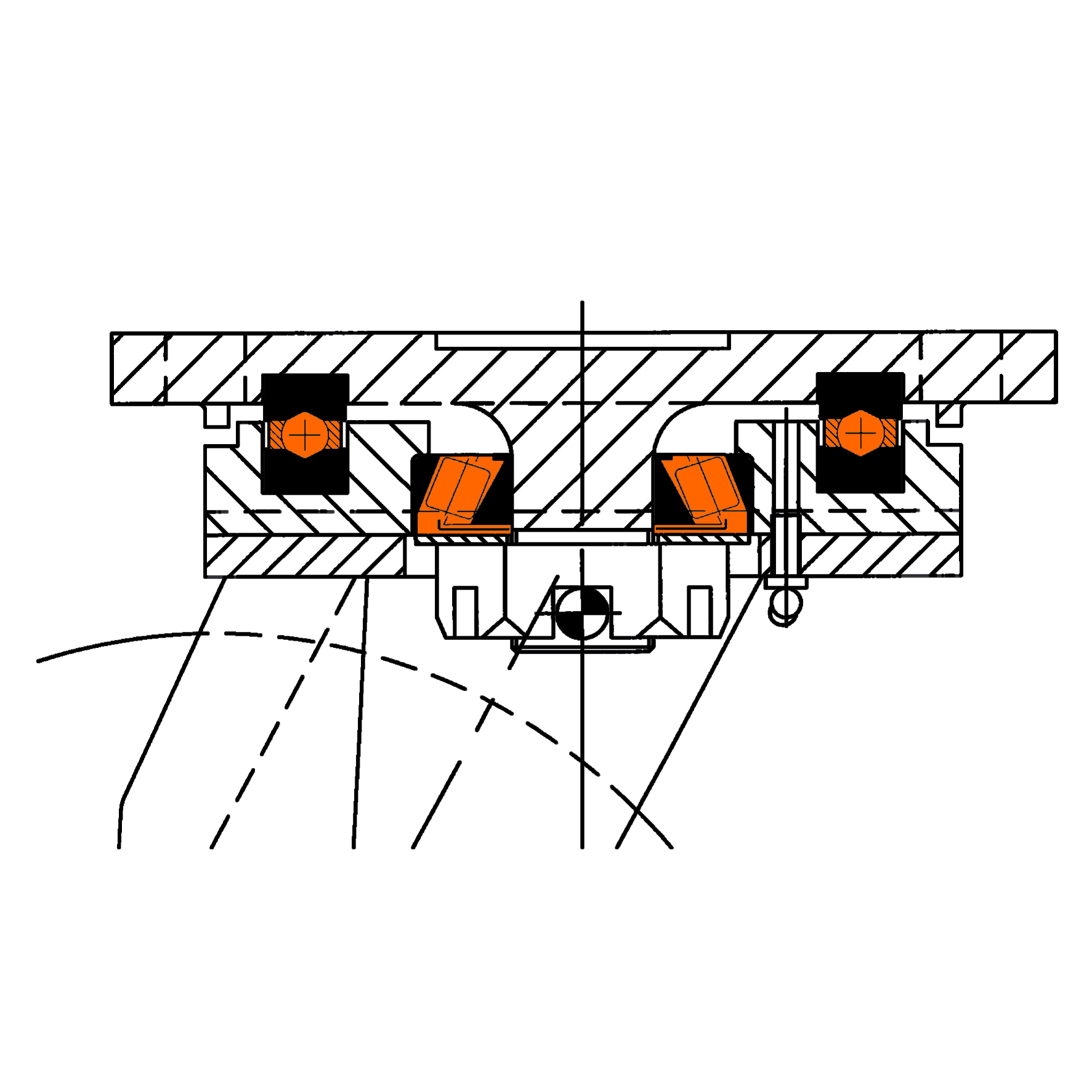 Gehäuse Stahlschweißkonstruktion · verzinkt · Kugellager im Gabelkopf