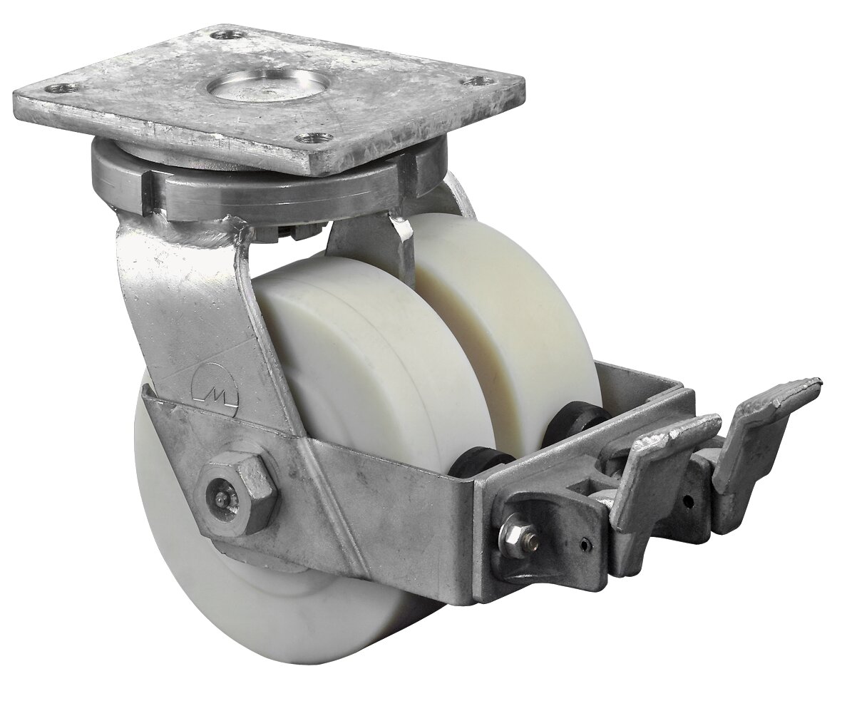 Lenkrollen mit Rad-/Totalfeststeller (Ø 100 + 125 mm Feststeller im Vorlauf)