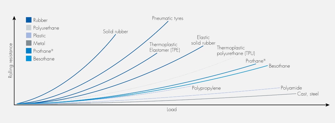 Over long distances, the energy loss is immense, even with polyurethane rollers. The result: operators have to apply more force. Besothane puts an end to this thanks to a significantly reduced running resistance and ensures improved continuous operation.