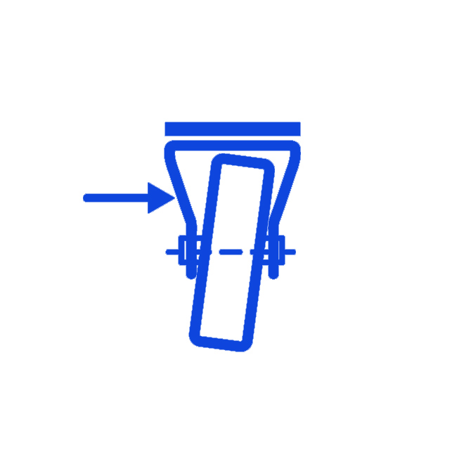 - a device with locked wheels and castors ist forcibly moved; fixed castors are moved lateral to the direction of travel;