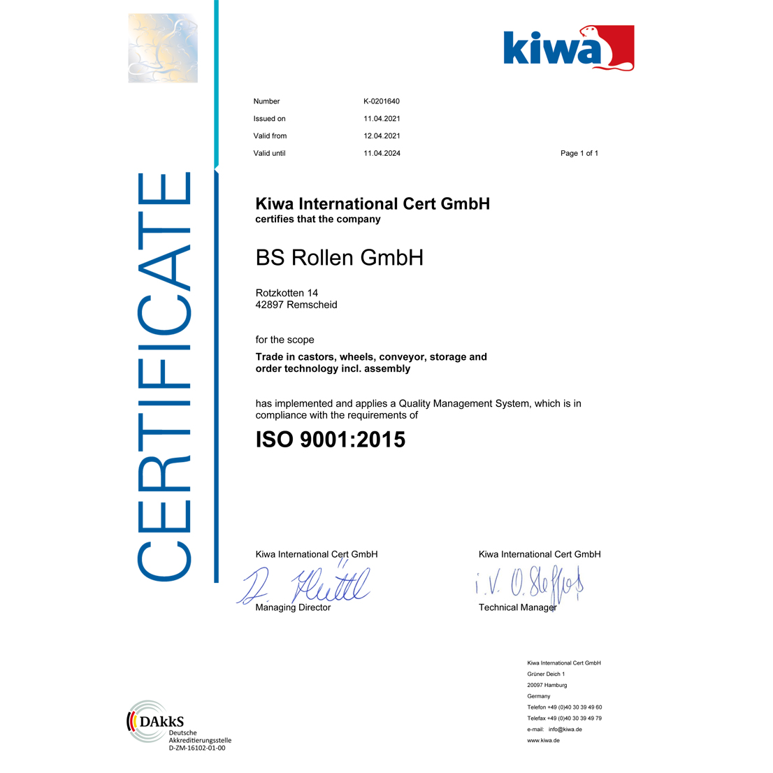 Certification of BS Rollen