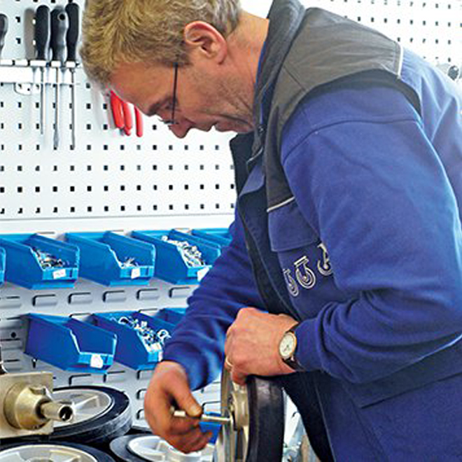 With our technical competence and the practical know-how of our team, we continuously develop innovations - in material and design - which optimise the comfort and handling of our castors, wheels and transport systems in use at your site.
